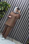 Ka Hijab Pile Detaylı İkili Takım - Kiremit