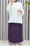Moda Ugs Kadın Kırık Beyaz Scuba Kumaş Puf Kloş Tesettür Ve Günlük Etek Boy:93Cm