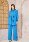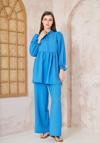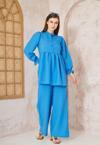 Kadın Pliseli Beli Lastikli Pantolon Tunik Gömlek Ikili Bürümcük Salaş Takım 3573330 - Image 1