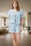 Lela Gömlek Yaka Beli Lastikli Kısa Kollu Şortlu Bayan Pijama Takımı 611PT00065 İNDİGO - Image 1