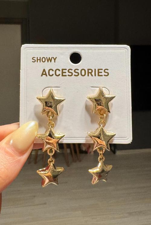 - Zarif tasarımıyla dikkat çeken bu kadın gold sallantılı yıldız küpe, her türlü kıyafeti şık bir dokunuşla tamamlar. - Altın rengi kaplaması ile göz alıcı bir parlaklık sunar ve özel günlerde veya günlük kullanım için idealdir. - Yıldız şeklindeki detayları sayesinde modern ve trend bir görünüm sağlar hem gündüz hem de gece kombinlerinizde rahatlıkla tercih edebilirsiniz. - Kaliteli malzemelerden üretilmiş olup uzun süreli kullanım için dayanıklılık vaat eder.
