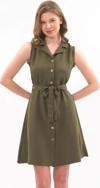 Bu elbise, sıcak havalarda rahatça kullanılabilecek bir seçenek olup, gündüzden geceye rahatça geçiş yapmanızı sağlar. Düğme ve bağlama detayları, modern bir hava katarken, gömlek yaka şıklığınızı tamamlar.
