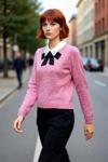 Kadınlar için tasarlanan bu göz alıcı triko kazak, regular kalıbı ile modern ve rahat bir duruş sergiler. Yumuşacık dokusuyla cildinizi şımartan akrilik karışımlı materyali, soğuk havalarda ideal sıcaklığı ve üstün konforu sunar. Antrasit rengi, zarif gömlek yaka görünümüyle birleşerek klasik ve çağdaş bir sentez oluşturur. Yaka üzerindeki ışıltılı taş detayları ve dikkat çekici kurdele fiyonk, bu kazağı sıradan olmaktan çıkarıp, her ortamda fark edilmenizi sağlayacak özel bir parçaya dönüştürür.