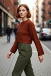 Bisiklet yaka tasarımı, klasik ve rahat bir kullanım sunarken, İspanyol kol tipi kazağa bohem ve şık bir hava katarak hareketli bir siluet oluşturur. Uzun kol boyu, soğuk havaya karşı maksimum koruma sağlarken, orta kalınlıktaki yapısı sayesinde hem sıcak tutar hem de hafif bir giyim deneyimi sunar. Cepsiz tasarımı, kazağın minimalist ve akıcı çizgisini vurgular. Triko kumaşının esnekliği ve nefes alabilir yapısı, gün boyu rahatlık sunarken, akrilik materyalin dayanıklılığı sayesinde uzun yıllar ilk günkü formunu korur. Makinede yıkanabilir özelliği ile pratik bir kullanım sunar.