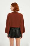 Kadın Oversize Balon Kol Dik Yaka Saç Örgü Crop Akrilik Triko Kazak Kış Modasına Uyumlu Kaliteli - Image 1