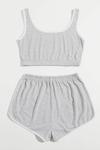 Kadın Gri Askılı Crop Top Ve Şortlu Gecelik Takım