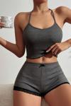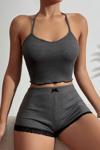 Beruflic Kadın Gri Kaşkorse Sırt Ve Bacak Kısmı Dantel Detaylı Şortlu Gecelik Takım