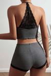 Kadın Gri Kaşkorse Sırt Ve Bacak Kısmı Dantel Detaylı Şortlu Gecelik Takım