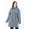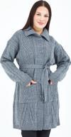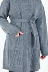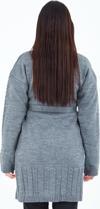 fresh&moda Kadın Gri Yakalı Düğmeli Cepli Kuşaklı Örme Triko Yün Uzun Hırka