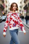 Bu Kadın Günlük Akrilik Oversize Triko Kazak, batik desenli ve uzun kollu tasarımıyla rahatlığı ve şıklığı bir araya getiriyor. Oversize kalıbı sayesinde modern ve salaş bir görünüm sunarken, akrilik materyal bileşimi yumuşacık dokusuyla teninize nazikçe dokunur ve sizi sıcak tutar. Canlı kırmızı ve mavi tonlarının ekru zeminde oluşturduğu batik desen, kazaka sanatsal ve özgün bir hava katarken, cepsiz tasarımı sayesinde sade bir şıklık sunar. Bu kazak, soğuk günlerde konforundan ödün vermeyen kadınlar için ideal bir seçimdir.