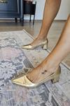 Zerhan İzlife 362 Kadın Platin Dantel Pırıltılı Küt Burun Alçak Topuk Abiye Ayakkabı