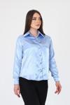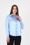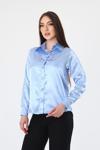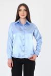 Kadın Hafif Dökümlü Bebe Mavi Saten Gömlek