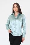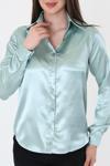 Kadın Hafif Dökümlü Mint Yeşil Saten Gömlek