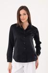 Kadın Hafif Dökümlü Siyah Saten Gömlek