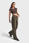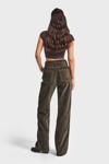 Its Basic Kadın Haki Renk Doris 26w5-15 Straight Fit Yüksek Bel Kalın Fitilli Velvet Kadife Kumaş Pantolon