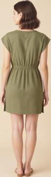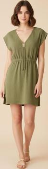 • Kadın Haki Yanları Yırtmaçlı Tokalı V Yaka Mini Plaj Elbisesi, doğanın huzur veren tonlarını modern bir tasarımla buluşturuyor.