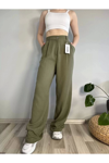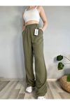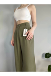 Kadın Haki Yüksek Bel Keten Palazzo Pantolon