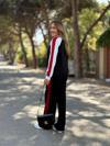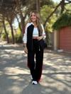 Kadın Hakim Yaka şerit Detay Hırka Ve Bol Paça Pantolon Ikili Takım
