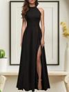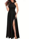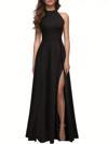 Kadın Halter Yaka Derin Yırtmaç Detaylı Tam Boy Ithal Krep Abiye Elbise