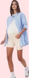 Bu ekru renkli hamile denim şortu giyip, günlük yaşamınızın tadını çıkarın! Yüksek bel ve boru paça tasarımıyla hem rahat hem de şık bir görünüm sunar. %98 pamuk ve %2 elastan karışımından üretilen kumaşı, nefes alabilir ve yumuşaktır. Karnınızı destekleyen özel tasarımıyla hamilelik döneminde de konforlu bir kullanım sağlar. Regular boyuyla her vücut tipine uyum sağlar ve rahat hareket özgürlüğü sunar. Makinede yıkama kolaylığı ile de günlük yaşamınızda size zaman kazandırır.