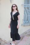 Pasaklı Giyim Kadın Hasır Kruvaze Yaka Kısa Kollu Etek Ucu Fırfırlı Uzun Elbise 2856250