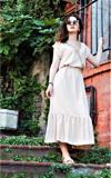 Pasaklı Giyim Kadın Hasır Kruvaze Yaka Kısa Kollu Etek Ucu Fırfırlı Uzun Elbise 2856250