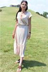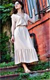 Kadın Hasır Kruvaze Yaka Kısa Kollu Etek Ucu Fırfırlı Uzun Elbise 2856250