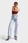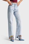 Its Basic Kadın Ice Kot Rengi 4s5-3 Straight Fit Çiçek Nakışlı %100 Koton İç Boy 80 Cm Tasarım Denim Jean