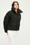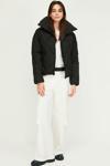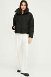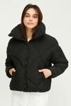 Kadın ıçi Elyaflı Rüzgar Geçirmez Dik Yaka Siyah şişme Kışlık Mont | Xs