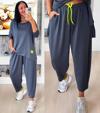 Moda Triko Bisiklet Yaka Düşük Kol Casual Günlük Basic Bisiklet Yaka Pantolonlu Triko Alt-Üst Takım - Image 1