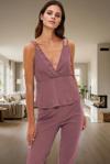 Bu pijama takımı ile kendinizi evinizin rahatlığında şımartın. Rahatlığı, şıklığı ve kalitesiyle günlük kullanım için idealdir. Birbirine uyumlu renkleri ile her mevsim rahatça kullanabilirsiniz. Hem evde geçirdiğiniz zamanı hem de uyku kalitenizi artıracaktır. Bu şık pijama takımı, size unutulmaz bir ev deneyimi sunacak.