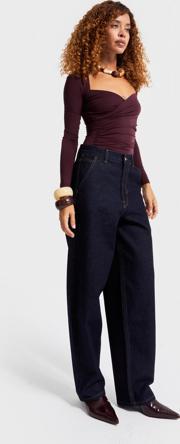 Its Basic Kadın İndigo Renk 7W5-50 Skater Fit %100 Koton Bol Kesim İç Boy 80cm Denim Jean