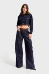 Its Basic Kadın İndigo Renk 7w5-50 Wide Leg Palazzo Fit Kemer Detaylı %100 Koton Özel Tasarım Denim Jean