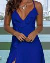 Kadın Ip Askılı Dekolteli Yırtmaç Detay Krep Elbise