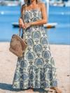 Kadın Ip Askılı Desenli Fırfırlı Süprem Elbise