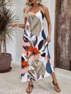 Kadın Ip Askılı Geniş V Yakalı Desenli Süprem Elbise