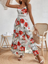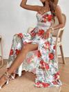 Kadın Ip Askılı V Yakalı Bel Güpür çiçek Desenli Yandan Yırtmaçlı Maksi Süprem Elbise