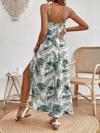 Kadın Ip Askılı V Yakalı Bel Güpür çiçek Desenli Yandan Yırtmaçlı Maksi Süprem Elbise