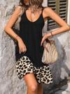 Kadın Ip Askılı Yuvarlak Yakalı Leopar Detaylı Elbise