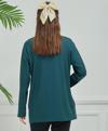 Banega Curve Büyük Beden Pamuklu Likralı V Yaka Basic Düz Uzun Kol Mor Bluz - Image 1