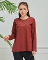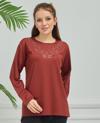 Kadın İşlemeli Anne Günlük Orta Yaş Penye Bluz
