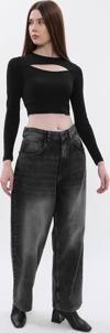 Kaliteli denim kumaştan üretilmiştir. %100 Pamuktur. Geniş kesime sahip rahat bir modeldir. Yüksek beldir. Fermuarlı modeldir. Bedenler arası 2 cm değişmektedir. M beden ölçüleri bel 43 cm, basen 58 cm, baldır 37 cm, paça genişliği 25 cm, iç bacak 72cm, boy uzunluğu 100 cmdir.