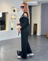 Kadın Ithal Burgu Kumaş Uzun Kollu Omuz Dekolteli Bluz Ve Pantolon Ikili Takım