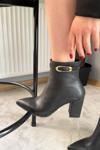 Preshley Kadın Julia Siyah Deri Yandan Fermuarlı Toka Detaylı Kalın Topuklu Sivri Burunlu Günlük Bot