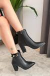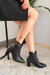 Kadın Julia Yandan Fermuarlı Toka Detaylı Kalın Topuklu Sivri Burunlu Günlük Bot