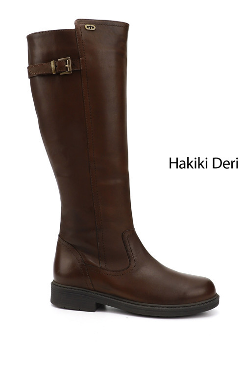 Gönderi(r) Kadın Kahve Antik Fermuarlı Kauçuk Taban Hakiki Deri Çizme