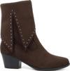 * Gön Suni Deri Sivri Burun Topuklu Western Kovboy Kadın Günlük Kısa Çizme