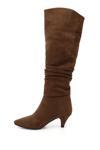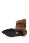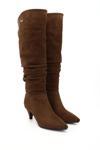 * Gön Suni Deri Sivri Burun Körüklü İnce Topuklu Kadın Çizme
