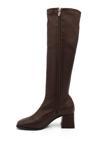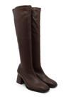 * Gön Küt Burun Deri Görünümlü Kalın Topuklu Kadın Streç Çizme