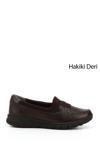 * Gön Hakiki Deri Yuvarlak Burun Dolgu Taban Kadın Günlük Ayakkabı